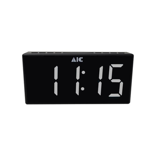 AIC - Radioreloj Despertador FM con gran pantalla LED blanca tamaño "Jumbo" de 24 x 11 cm, Alarma dual, Atenuador "dimmer" de 5 pasos, Función de repetición, Alarma de día de la semana. Mod. 48XXL